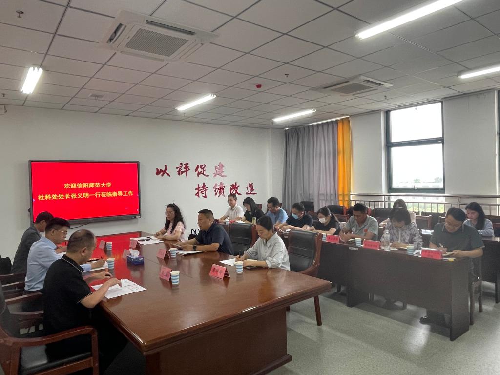 5月30日,beat365在线平台官网在艺术楼707会议室举办社科工作座谈会。会议由科技处(社会合作处)处长刘纪成主持,信阳师范大学社科处处长张义明应邀来校,文科学院分管科研副院长参加了此次会议。