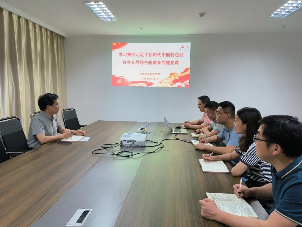 为推动学习贯彻习近平新时代中国特色社会主义思想主题教育走深走实,4月25日,科学技术处党支部书记史洪中在综合楼216为全体工作人员作了“学思想、强党性、重实践、建新功”学习贯彻习近平新时代中国特色社会主义思想主题教育专题党课。