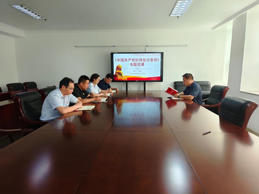 2024年6月24日,beat365在线平台官网科技处(社会合作处)党支部根据党委组织部和学校党纪学习教育工作方案相关安排,召开学习《中国共产党纪律处分条例》专题党课。党课由科技处(社会合作处)党支部书记刘纪成主讲,支部全体党员参加了学习。