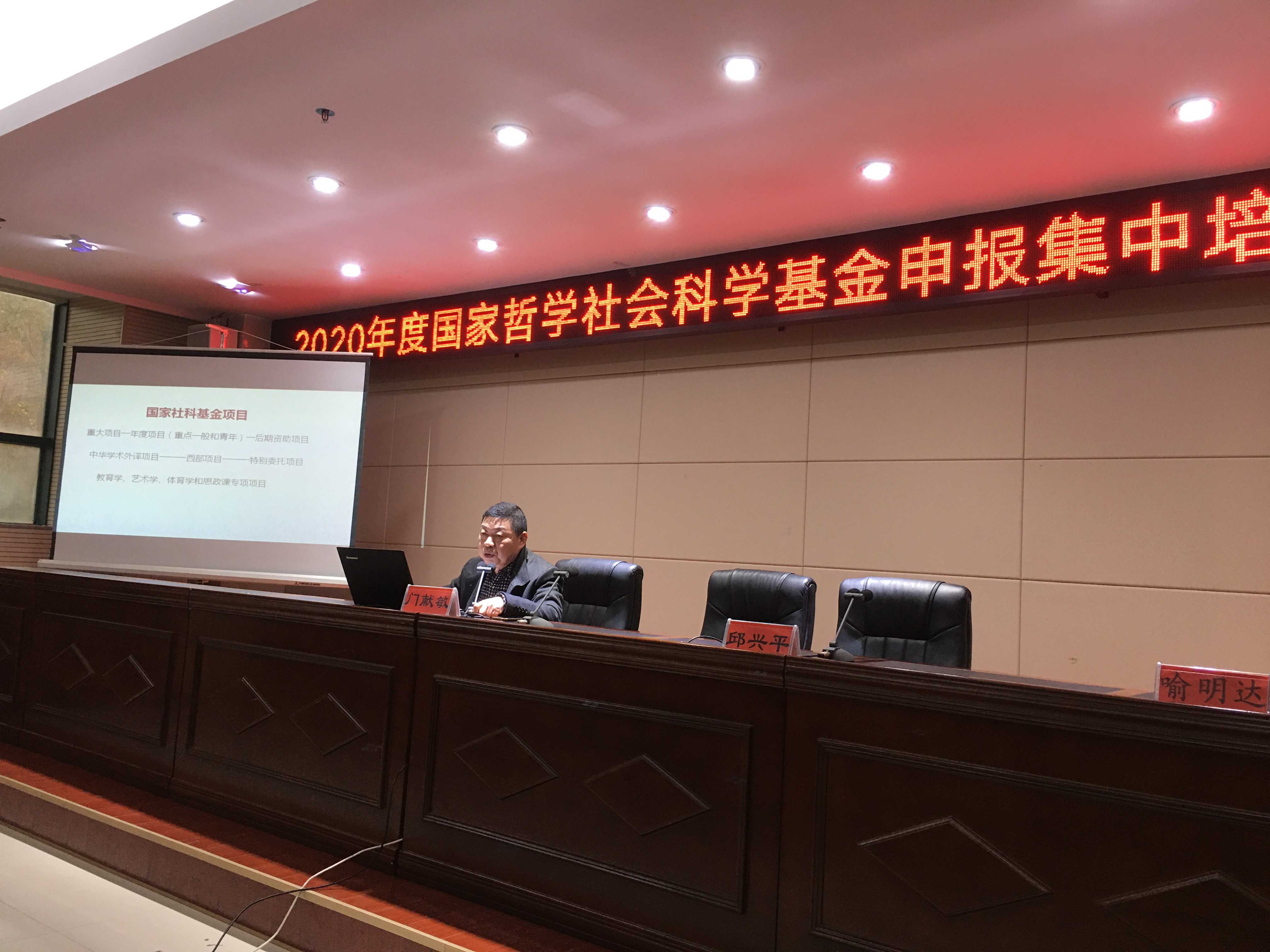 12月24日下午,2020年度国家社会科学基金项目集中宣讲培训会在beat365在线平台官网综合行政办公楼一楼会议室举行;会议由科技处和马克思主义学院联合举办,科技处副处长喻明达主持,全校有110多名教师参加了此次集中宣讲培训会。