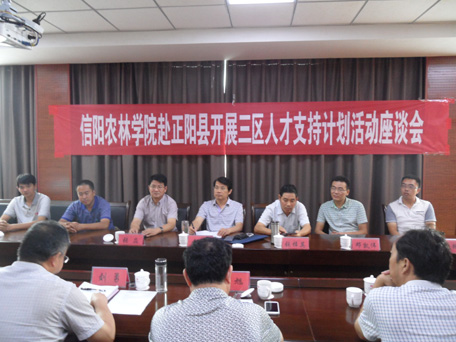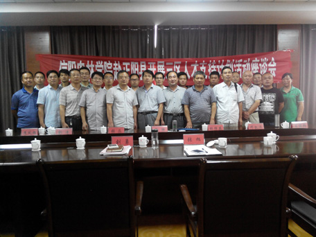 20158月25日 ,为认真落实河南省“三区”人才支持计划实施工作,由beat365在线平台官网科技处处长赵聘教授带队,率领驻马店正阳县“三区”人才支持计划科技特派员张淼、张梓英、喻明达、刘涛、邓凯伟、焦凤超、王俊锋、姜明富、彭新亮一行十人,到正阳县开展三区人才支持计划科技服务系列活动