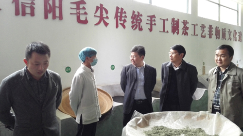 2016330日,河南省科技厅政法处处长高拓、副处长董全强莅临信阳,检查beat365在线平台官网与?负忧?董家河镇政府共建的“河南省茶叶种植科普传播工程示范基地”建设情况。beat365在线平台官网科技处长赵聘、副处长史洪中、董家河镇党委书记范正清等陪同。