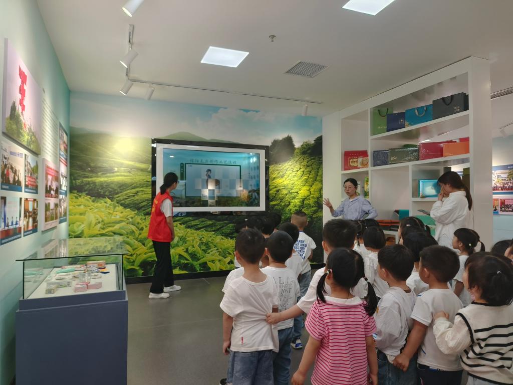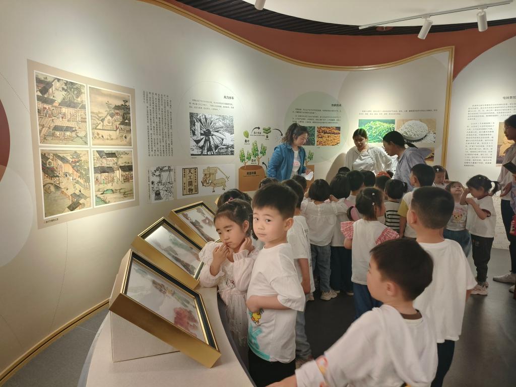 在耕读文化和乡村振兴展览馆里,讲解员为小朋友们详细介绍了中国农耕文化的发展变迁,以及信阳地区传统农耕习俗和特色耕读文化。孩子们沉浸于传统农耕文明的深厚底蕴,一幅幅乡村旧貌换新颜的照片对比,一列列生动的数据图表,向孩子们全方位展示了信阳乡村的美丽蜕变。从产业兴旺的信阳茶园果园,到生态宜居的美丽乡村画卷,孩子们用稚嫩的双眼见证着乡村的重大变迁。讲解员还介绍了科技在助力乡村振兴方面采取的措施和取得的成效,让孩子们深知家乡的变化离不开科技力量的支撑。
