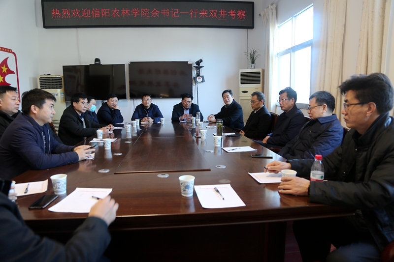 为进一步落实《市长办公会议纪要》(〔2020〕7号)精神,推动学校教学实习实训基地建设,提升产教融合发展能力,强化应用型人才培养质量,1月12日,党委书记余作斌带领校领导以及相关学院和部门负责人,前往浉河区双井乡考察调研。浉河区区委常委、区委副书记谷光亚,双井乡党工委书记涂延海,办事处主任韩列贵,人大工委主任梅春芝陪同考察调研。