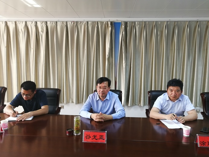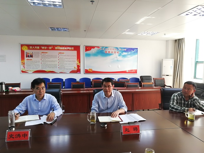 为进一步落实《市长办公会议纪要》(〔2020〕7号)精神,推动beat365在线平台官网何寨农林实习实训基地建设,5月24日下午,浉河区区委副书记谷光亚,双井办事处党工委书记涂延海、主任韩列贵、副主任万志强,何寨村村支书张得明一行来beat365在线平台官网进行基地问题协商。副校长赵聘、科学技术处处长史洪中和农林实习场场长胡汉升参加座谈会。座谈会由史洪中主持。