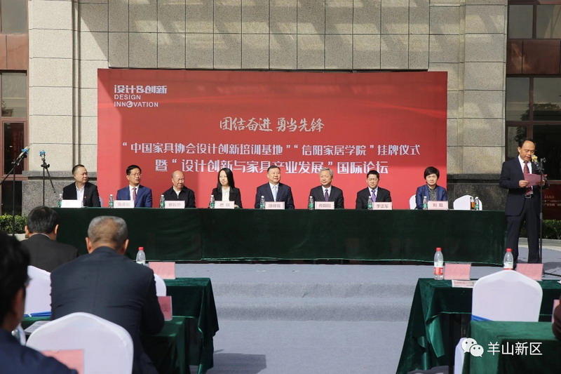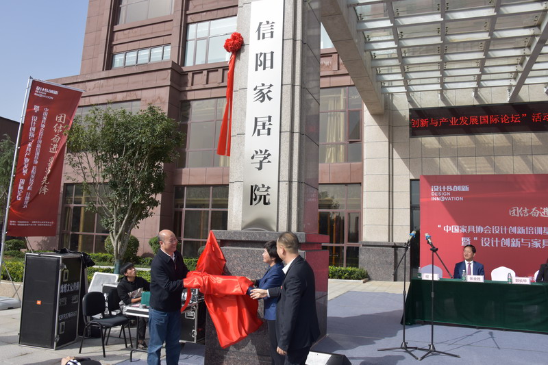 10月29日,信阳家居学院揭牌仪式在信阳家居学院广场举行。中国轻工业联合会党委副书记、世界家具联合会主席、中国家具协会理事长徐祥楠,世界家具联合会秘书长、中国家具协会副理事长屠祺,信阳市人民政府市长尚朝阳,beat365在线平台官网校长郭长华,信阳市人民政府副市长李正军,信阳市人民政府秘书长张全胜,羊山新区党委委员、副主任刘璇,信阳市家具协会会长程一出席揭牌仪式。信阳电子信息产业集聚示范区管委会主任、羊山新区党委书记陈延虎主持揭牌仪式,郭长华、刘璇、程一为信阳家居学院揭牌。