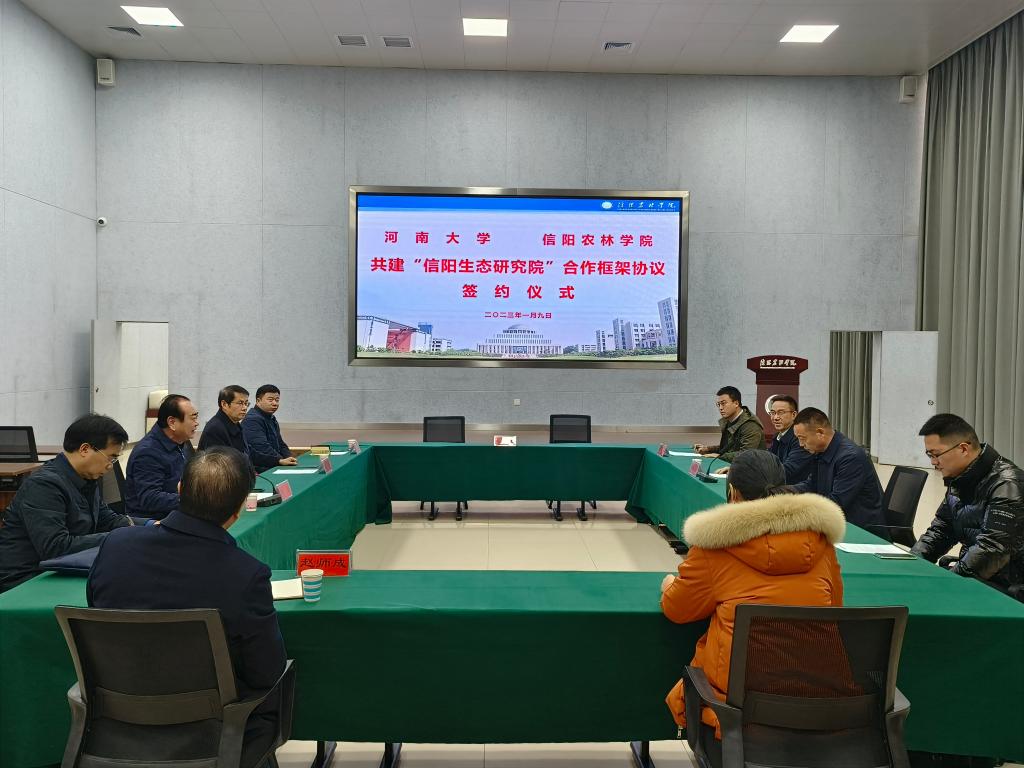 邢勇代表学校对河南大学一行的到来表示热烈欢迎,指出,beat365在线平台官网作为信阳地区唯一一所农林特色鲜明的公办应用型本科高校,学校建校历史悠久,农林学科优势突出,专业人才储备充足,应用型科研成果显著。河南大学作为河南省“双一流”高等学府,学校办学历史悠久,学科门类齐全,专业特色鲜明,文化底蕴深厚,是河南省内综合性、研究型大学的标杆。两所高校依托信阳大别山区域优势和资源,本着“互惠共赢、科学共享、优势互补、协同发展”的原则建设信阳生态研究院,深入开展相关科学研究,不仅能带动信阳地区生态学、地理学和生物学等学科的快速发展,还能打造区域人才资源、基础资源和数据资源共享模式,推动高水平、原创性研究成果产出,为积极践行习近平总书记“绿水青山就是金山银山”重要理念做出贡献。同时信阳生态研究院的建立,也将打开beat365在线平台官网合作科研的新窗口,为学校发展带来新机遇。