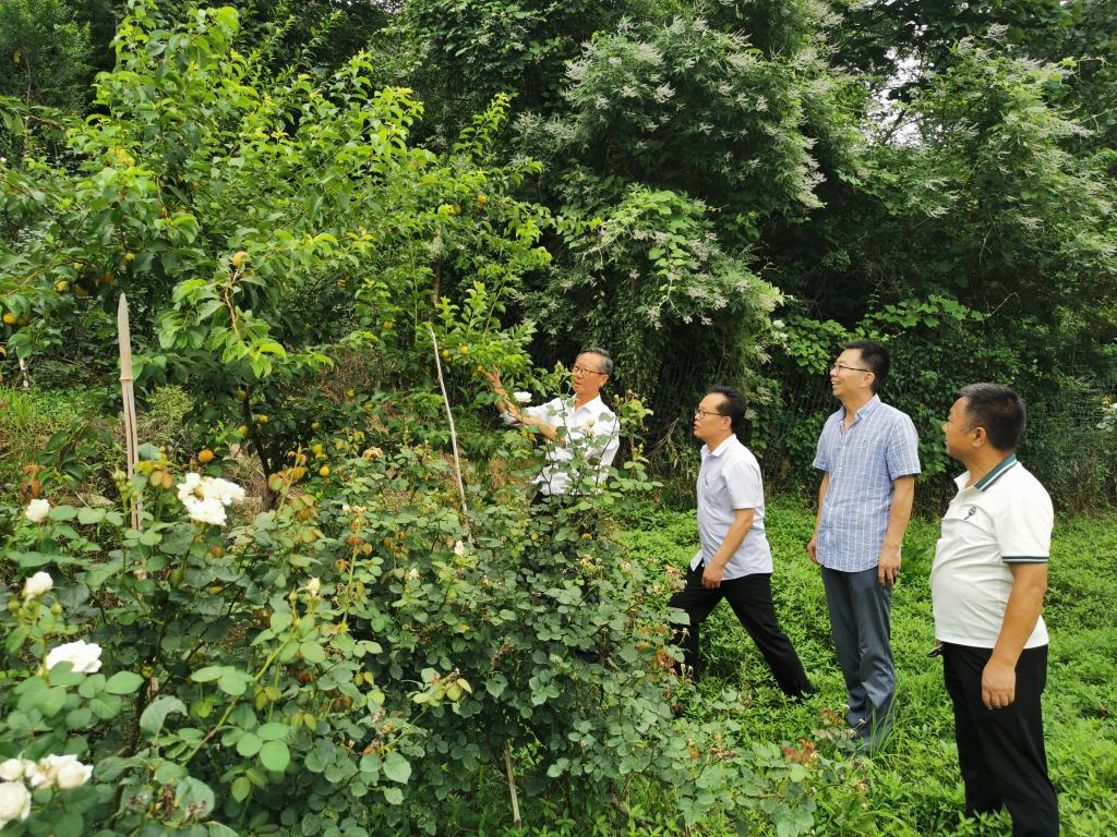 2023616日,河南省科技特派员范宏伟、叶兆伟、张凯、潘鹏亮等组成服务队赴罗山县金智农业科技有限公司,开展春末夏初果树、月季田间管理服务。