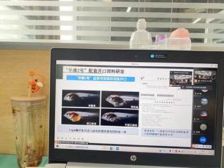 报告会上,呼光富副教授分享《胆囊收缩素调控草鱼性成熟的作用机制研究》,刘寒副教授分享《团头鲂食性的嗅觉分子机制探索》,何珊副教授分享《鳜鱼饲料健康养殖技术体系研发与应用》,侯杰副教授分享《养殖尾水治理与养殖环境调控》,各位老师就当前研究的成果与与会人员做了典型报告,并就未来研究的方向做了进一步规划。通过线上学习,一是老师们进一步了解了水产行业专家研究的热点及难点,开阔了视野;二是老师们通过不断的学习,更新知识储备,进一步营造浓厚的科研氛围。