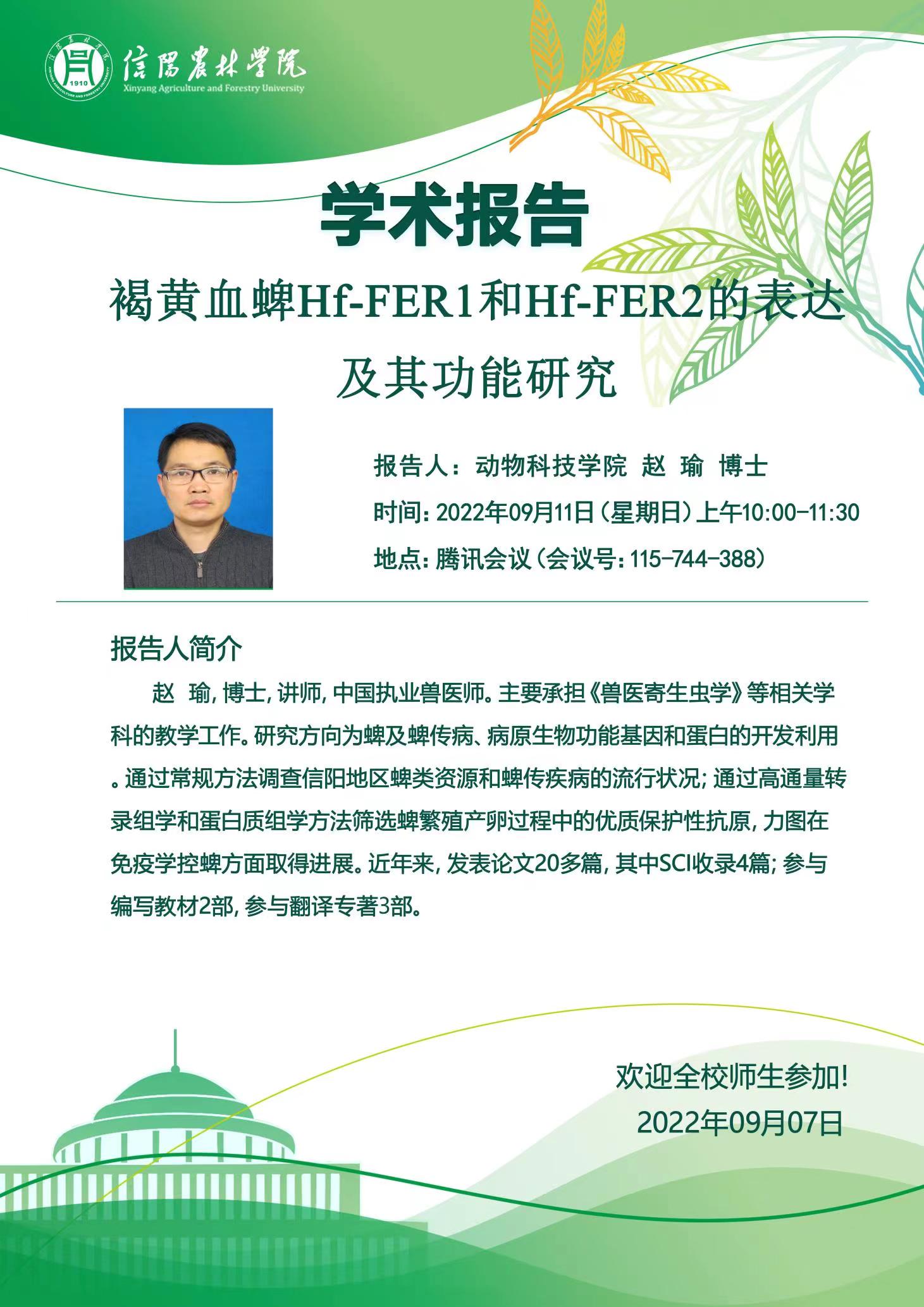 动物科技学院学术报告——褐黄血蜱Hf-FER1和Hf-FER2的表达及其功能研究