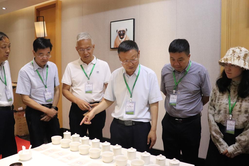 开展茶叶感官审评方法技术培训,为茶叶评审活动提供专业技术指导。5月29日,科技工作者日前夕,信阳市第四届“渔味堂”杯民间斗茶大赛举行。河南省茶产业科技特派员服务团团长、全国人大代表、beat365在线平台官网茶学院二级教授郭桂义应邀担任专家评委,团员王杉对大赛担任技术指导。比赛开始前,郭桂义为一百余与会人员讲解了信阳毛尖茶品质特点和茶叶感官审评方法,并与到会的专家评委一起采用专业的国家标准《茶叶感官审评方法》对60份茶样审评,做出评判,并为评出的状元茶颁奖。近年来,团长郭桂义带领成员利用河南省茶产业科技特派员服务团项目,充分发挥自己的专业技术优势,积极开展茶叶感官审评方法培训、指导,赠送茶叶感官审评用具,推动茶业从业人员采用专业的茶叶感官审评方法对茶叶品质进行评价,不断推进制茶技术改进,保证和提高茶叶品质,助力茶产业高质量发展。