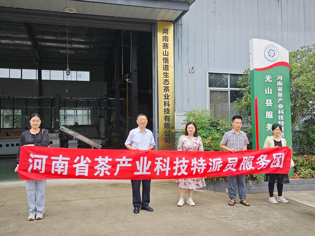 最后前往河南赛山悟道生态茶业有限公司,了解该企业使用春末夏初原料制作的绿茶,企业表示夏秋茶滋味苦涩,难以卖上价格,因此不愿意浪费精力制作。郭桂义从科学角度解释,使得茶汤鲜爽,也就是让茶叶的好喝成分——茶氨酸,含量春季最高夏秋低,而让人感觉到苦涩的物质茶多酚含量也是夏季高。因此消费者觉得夏秋茶苦涩味重,口感差,缺乏清香味。夏秋茶也不是没有长处,夏秋的茶叶原料,香气前体物质丰富,有着丰富的胡萝卜素等物质,可以制茶过程中转变为较强的香气成分。因此根据夏秋茶原料的特性,郭桂义教授等提出加工过程中适当减轻揉捻程度,降低内含苦涩味儿茶素等物质浸出,降低苦涩味,也可以适当提高干燥温度,或尝试融入其他工艺制作新工艺绿茶,改进绿茶香味。而后,科技特派员在茶叶加工车间现场发现,加工的茶叶条形弯曲,建议企业改进制茶工艺,增加理条机,增设理条工序,把茶叶条形适当做直,增加色选机,提高茶叶净度,使茶叶外形更加美观,适应市场消费需求。最后,由科技特派员牵头与赛山悟道签订了校企研发中心,推进茶产业产学研各环节相互贯通,科技助力企业发展,实现科技创新、人才与产业、企业精准对接,形成产学研深度融合的创新体系。