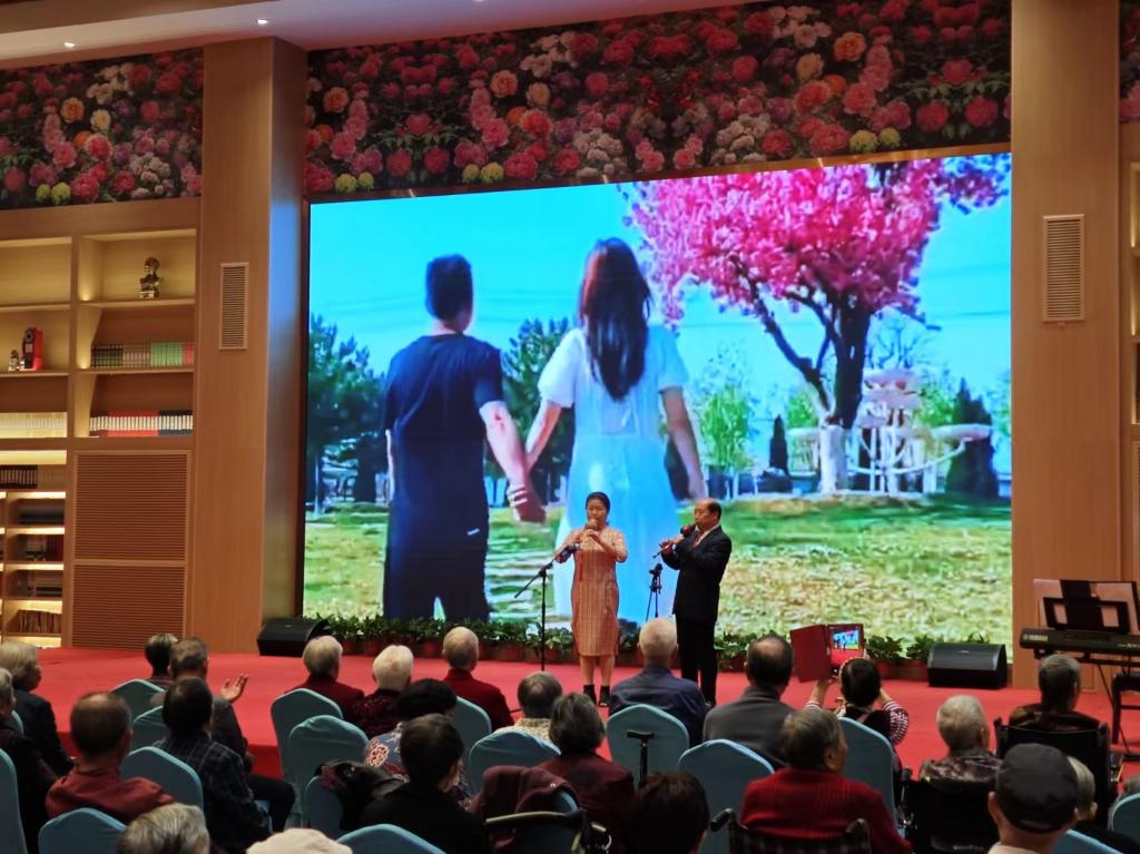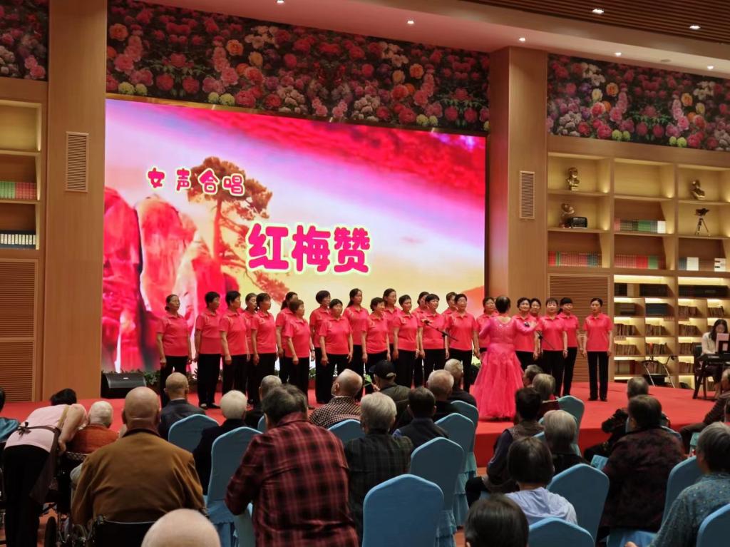 演出开始前,银龄合唱团向观看演出的老人献上美好的祝愿,祝愿他们身体健康,晚年幸福。