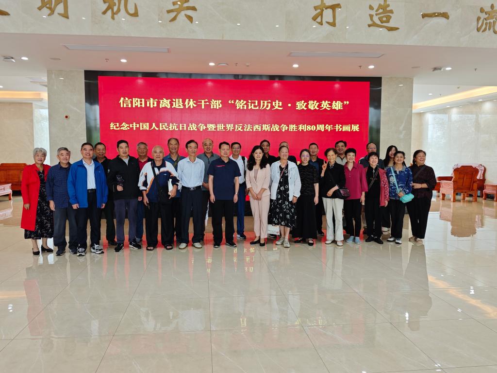 9月12日,离退休职工党委组织党员前往信阳市老干部活动中心,参观由信阳市委老干部局主办的“铭记历史 • 致敬英雄——纪念中国人民抗日战争暨世界反法西斯战争胜利80周年书画展”。