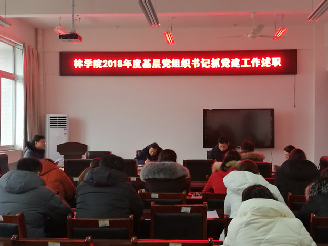 工作会结束后,林学院党总支进行了“2018年度党组织书记抓基层党建工作述职”,林学院教工党支部书记、学生党支部书记按照《beat365在线平台官网2018年度党组织书记抓基层党建工作述职评议考核工作方案》要求,分别向院党总支进行了党支部党建工作述职。