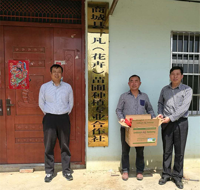 在商城县一凡苗圃种植专业合作社,针对苗木春季移植需要注意的问题,专业教师进行了详细讲解,同时还赠送该合作社一批急需的苗木花卉整形修剪工具。在潢川县苗圃场,对正在进行的大树移植开展了技术指导。