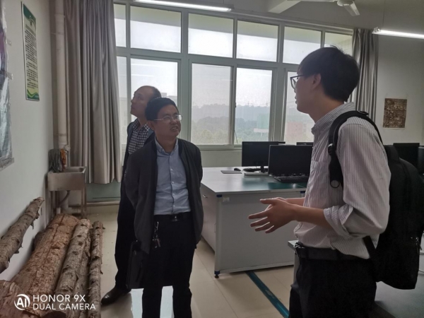 5月19日上午,信阳市科技局陈秀利科长一行到林学院开展科研平台建设情况调研,林学院黄玉杰、梁祥鹏陪同调研。