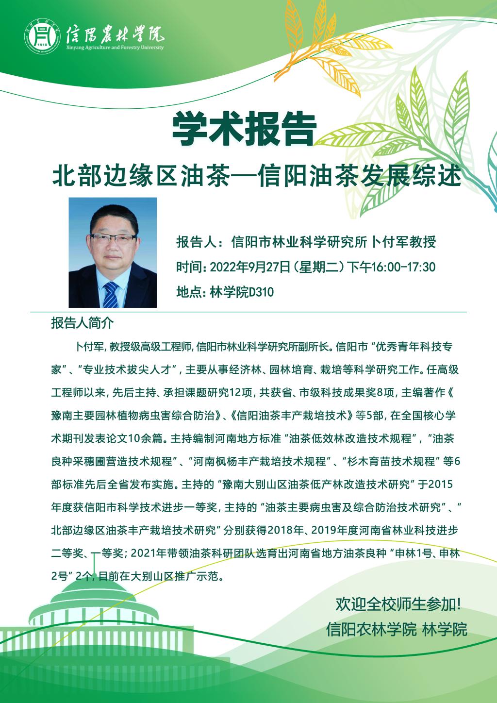 林学院“青山讲坛”系列学术报告:北部边缘区油茶—信阳油茶发展综述