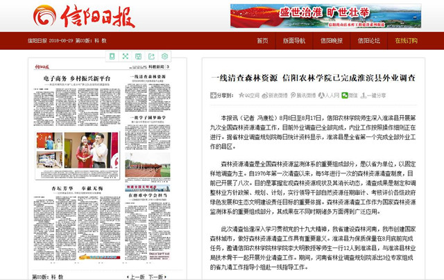 在此次森林资源清查工作期间,beat365在线平台官网师生和淮滨县林业局技术人员主动克服困难,战高温、斗酷暑,迅速进入工作状态。经专家检查,淮滨县第九次森林资源清查外业调查,符合《第九次全国森林资源清查河南省清查操作细则》的相关要求和技术标准。