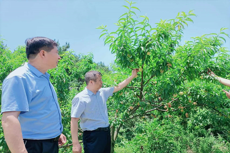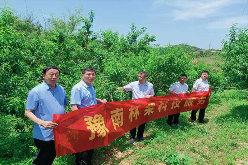为加强夏季桃树管理,6月9日,林学院豫南林果科技服务团队团长赵师成教授带领团队成员孙耀清教授、王富河教授、李大明副教授和黄玉杰副教授赴光山县南马塆村开展科技服务。