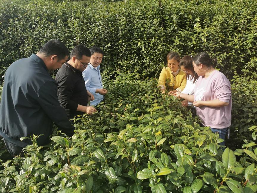 科技特派员服务队一行人首先来十八盘茶业有限公司陈元光广场销售点,与受援单位周其强总经理进行座谈,就茶树开采时间、鲜叶采摘标准、春茶产量、茶叶销售等相关情况进行了交流。董楠建议从鲜叶等级划分、茶叶青凋来源把控、线上线下宣传等几个方面把关,围绕学生群体打造高性价比、真实可信的信阳毛尖产品,借助来自全国各地的大学生将企业产品扩散出去。随后在合作社骨干的陪同下,科技特派员服务队赶往武庙集镇十八盘茶场进行实地走访,调研茶树病虫害发生状况及传播规律,为茶树病虫害的防治提供科学方案。