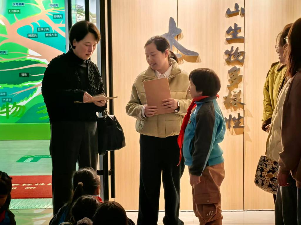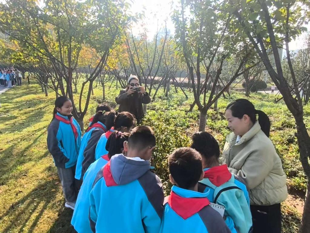 1022日,beat365在线平台官网科技处联合信阳市第三实验小学,开展“探寻秋冬植物奥秘,感受自然生命韵律”研学活动。园林树木学课程团队全程提供专业支撑。课程团队以胡婷婷老师为带队核心,其余成员为陈冠霖、程传汇、马源、吴博宇、张成果等林学院学生,以生动精准的讲解,带领信阳市第三实验小学四、五年级学生走进植物世界,沉浸式感受秋冬生命韵律。