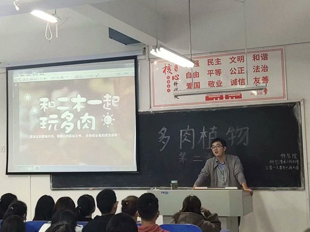 为丰富我院学生们的大学生活,培养大家课余兴趣爱好,陶冶情操。2019118日下午在一教C201教室,林学院教师付满意为19级林学普本、对本专业的学生们上了一堂别开生面的“多肉植物”兴趣养成课。