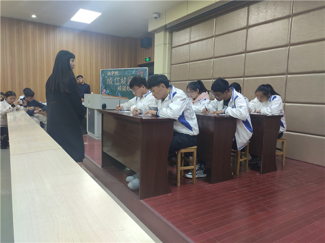 诚信是一切价值的根基,人无信不立,国无信必危。11月22号晚上七点,林学院在二教204举行“诚信校园行”短剧大赛,资助专员范阳阳、19级辅导员申家朋和学生会主席团、18、19级学生参加了本次大赛。