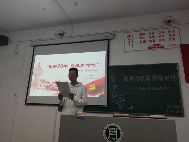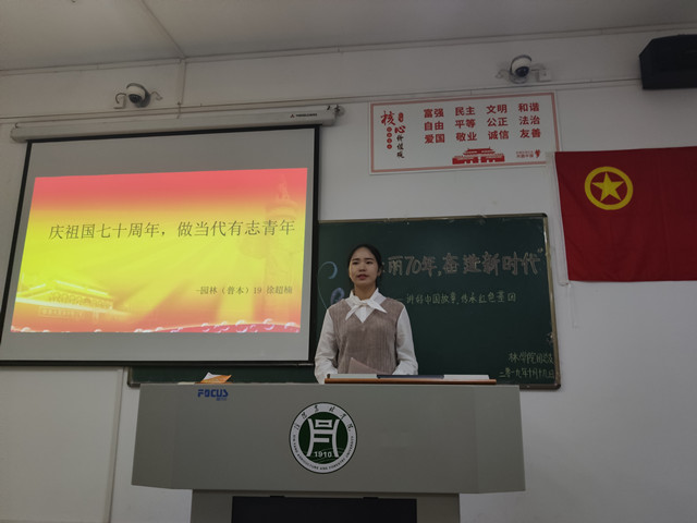 70年砥砺奋进、70载壮丽诗篇。1019日下午,在林学院党总支的组织领导下,林学院学生第一党支部、学生第二党支部、林学院团总支在二教116室共同举办了“壮丽七十年,奋进新时代——讲好中国故事,传承红色基因”主题演讲比赛。
