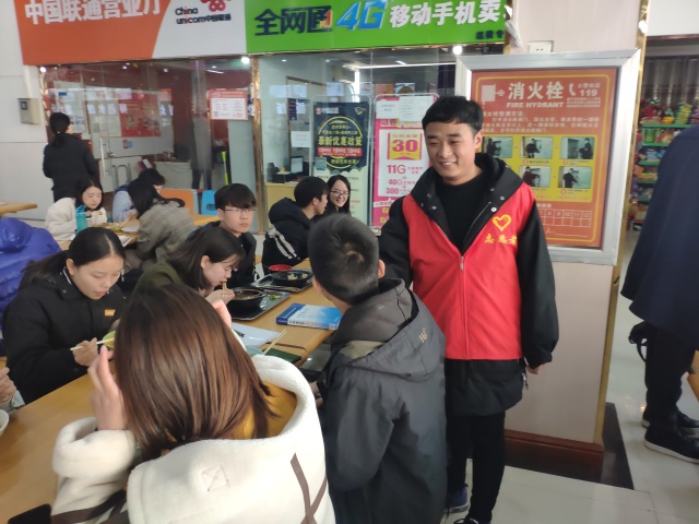 同学们中午时分准时到达一餐并有序地开始他们的志愿活动。活动中,志愿者提醒同学们按次序排队,不喧哗,珍惜粮食,吃完饭后送走餐盘,并帮助食堂阿姨们处理餐具。在同学们齐心协力的努力下,食堂用餐环境变得更加文明有序。