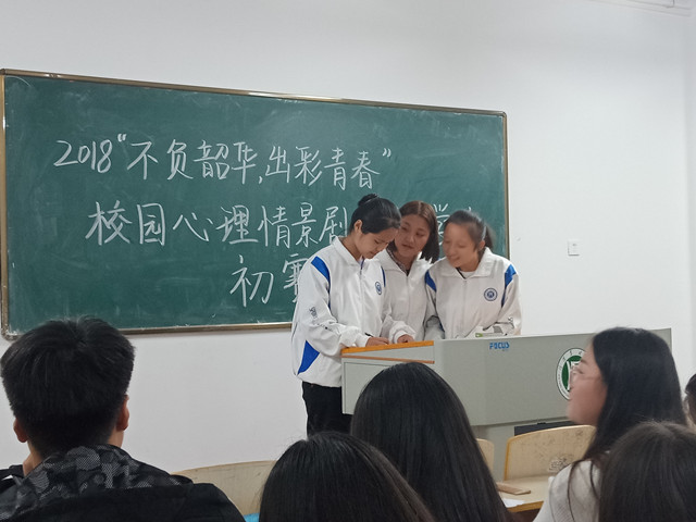 为了积极响应学校心理文化节,塑造积极向上的校园文化精神,展现话剧艺术的永恒魅力,提升广大团员青年的审美情趣和艺术修养,由林学院心理部主办赵晶晶老师指导的不负韶华,出彩青春校园情景剧大赛初赛于20181024日在二教211B拉开帷幕。担任本次比赛评委的有心理辅导老师赵晶晶,以及林学院团总支学生会各部门副部,参赛者为来自林学院18级各班的5支队伍。