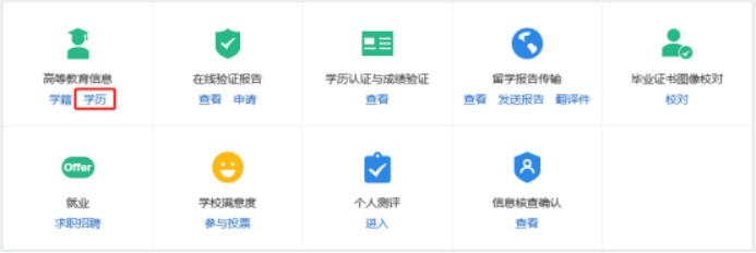 成功登录后,在“高等教育信息”中点击“学历”,通过身份核验后,即可查到与注册身份证号对应的学历。