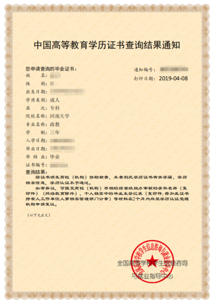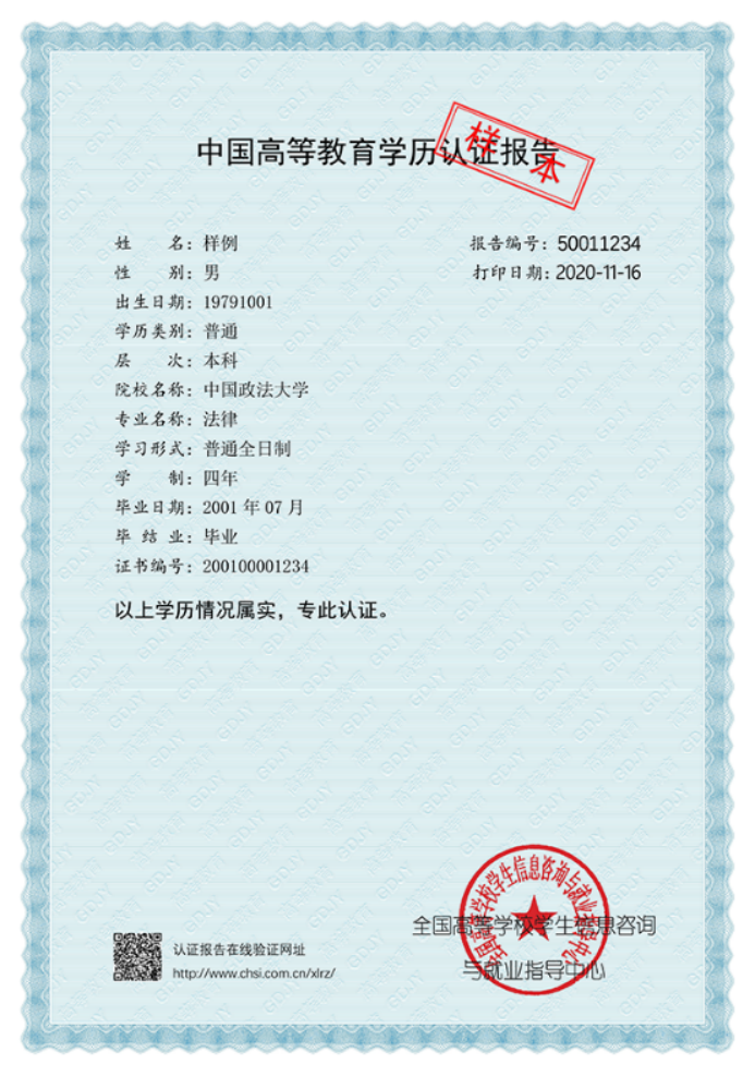 中国高等教育学历认证报告(样本)、中国高等教育学历认证查询结果通知(样本)