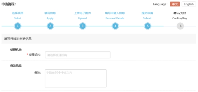 填写申请人信息和报告接受邮箱,并选择受理机构。