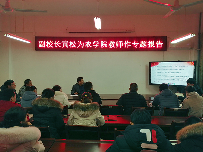 12月1日下午,副校长黄松以《以强农兴农为己任,谱写新时代乡村振兴绚丽篇章》为主题,在我院会议室给全院教师作了一场精彩而生动的专题报告。