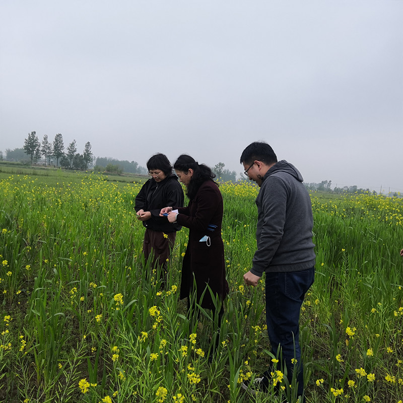 科技服务团到息县弯柳树村河南远古生态农业科技有限公司考察了弱筋小麦的生长状况、病虫害发生情况以及彩色小麦引种种植情况。河南远古生态农业科技有限公司采用酵素改良土壤,土壤质量好,生态环境持续改善,但土壤肥力仍需要提升,以保证小麦后期生长需要。由于今年春季持续低温和阴雨天气,小麦条锈病持续蔓延。而且,小麦扬花期与当地阴雨天气相遇,小麦赤霉病存在流行的风险。因此,服务团建议公司在降雨过后,及时喷施植物生长调节剂芸苔素内酯和氰烯菌酯、戊唑醇、丙硫菌唑等杀菌剂,提高植物抗逆性,有效防控小麦赤霉病,保证小麦的品质和产量。