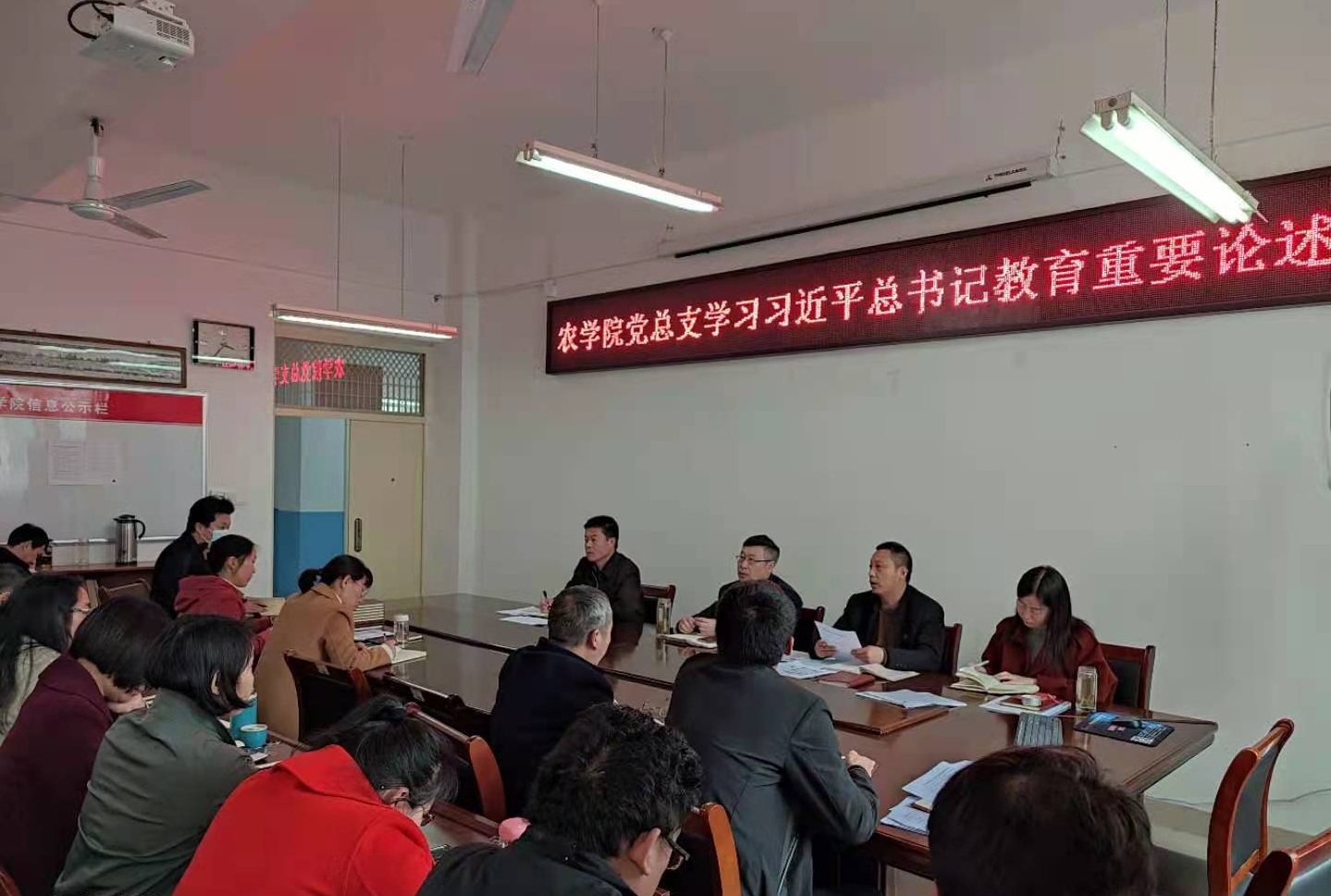 根据省教育厅的相关工作部署,学校决定于2021年4月开展师德师风建设主题教育月活动。4月6日下午,我院党总支在会议室2A316学习了《习近平总书记教育重要论述讲义》第三讲“坚持优先发展教育事业”。本次活动由院党总支书记李传保主持,农学院全体教职工参与了学习。