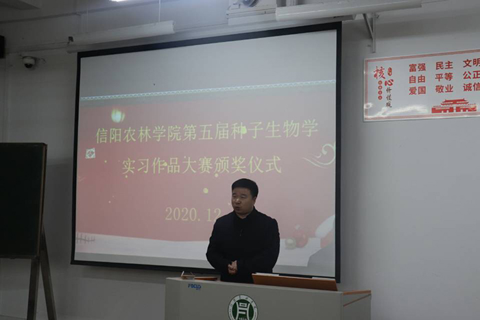雷振山主任在本次颁奖结束后发表致辞,他提出立德树人是专业人才培养的根本任务,作为新时代涉农专业大学生,同学们要在专业学习的过程中不断培养自己的专业情怀。2020年中央经济工作会议中提出:要“解决好种子和耕地问题”,这是十八大以来首次在中央经济工作会议层面提到解决种子问题,种业人才将越来越受到重视。新时代中国的发展过程中,发展是必要,安全是必须,种安粮才安,农业大有可为,种业大有可为。希望同学能够通过本次活动,树立专业自信,专业情怀,力争成为适应新时代发展的种业人才。