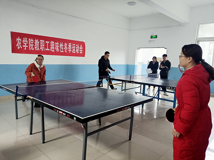 为了进一步丰富我院教职工的业余生活,锻炼身体,强健体魄,让广大教职工以更饱满的热情投入到教育事业中,农学院分工会近期成功举办2020年度教职工趣味性冬季运动会,此次运动会主题是“强身健体,团结奋进”,口号是“我运动,我健康,我快乐”。运动会共有5个项目,包括乒乓球、羽毛球、篮球投篮、两人三足和跳大绳,经过前期的农学院分工会的积极动员,共有85人次参加比赛。