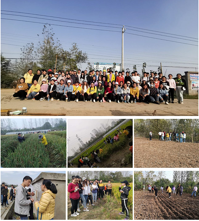 实训开始,周强老师介绍了本次实训的总体安排,并且给大家讲解了实训的注意事项,程琴老师在C402进行了题为《种子科学研究进展》讲座,拓展了同学们的知识面;周强老师从特种稻育种角度给同学们讲解如何进行育种、田间水稻农艺性状调查,并带领同学们在校水稻研究所三桥试验田实地进行田间农艺性状调查;刘娟和唐明明老师带领学生前往信阳市种子管理站甘岸镇二郎村试验基地实地考察了水稻超高产栽培试验研究、再生稻生产实践、稻虾共养、水稻品种选育工作并做了病虫害调查。李淑梅、楚宗丽、唐明明、刘书含、李杰老师带领同学们到洋河农艺农机合作社试验基地进行田间小区划分及小麦播种;唐明明和刘娟老师带领同学们在三桥试验田进行了小麦和油菜的播种、试验田开沟,并与同学们交流总结此次实训的感悟与体会。