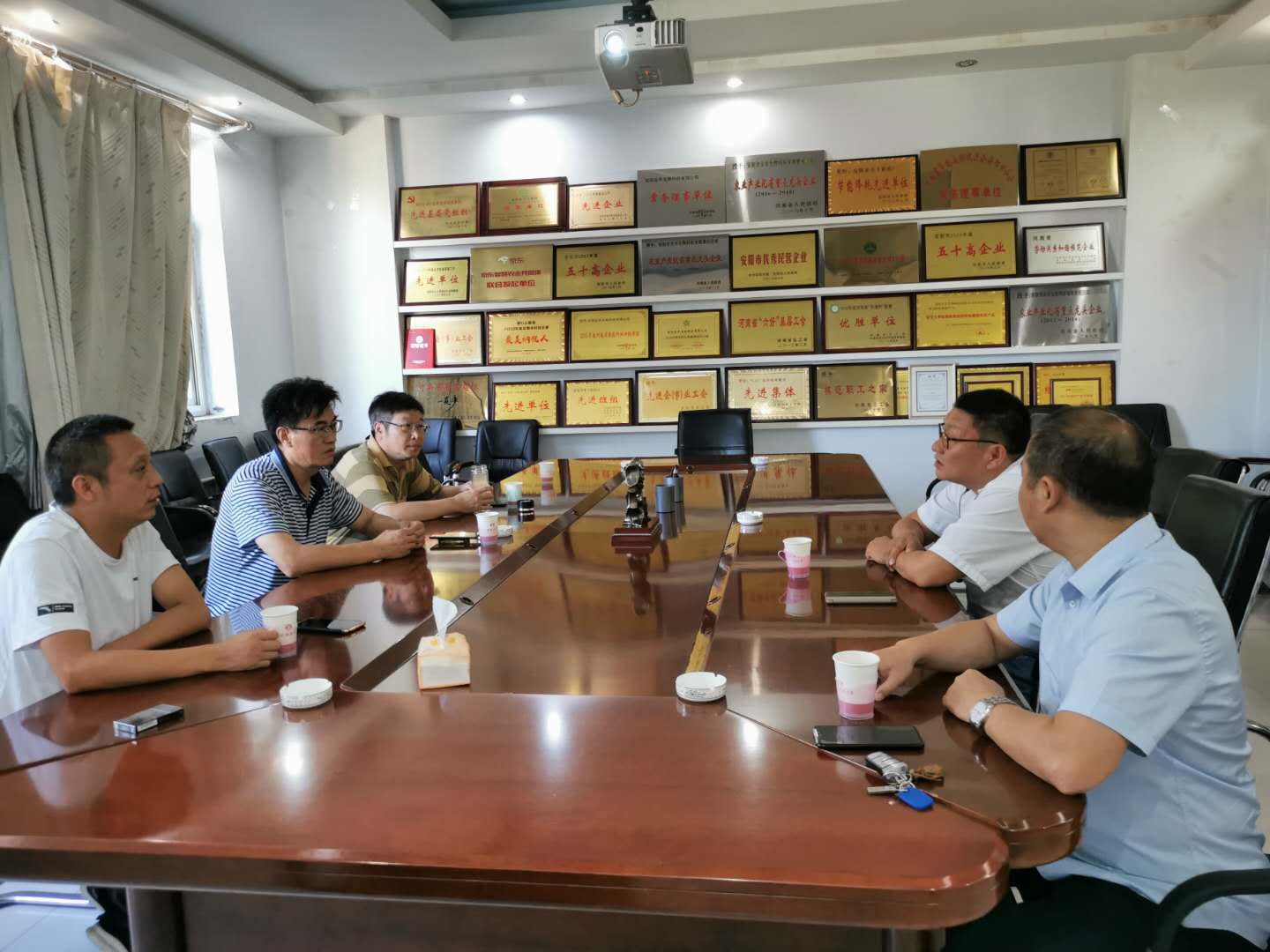 为更好的全面落实新农科发展建设,进一步推进协同育人强化行动,2020年8月31日-9月1日,副校长赵一鹏教授带领农学院党总支书记李传保、农学院院长尹健、植保教研室主任王国君一行,前往安阳全丰生物科技有限公司,就现代产业学院建设等进行考察交流,受到公司董事长王志国等领导的热烈欢迎,并在公司会议室组织召开了座谈会。