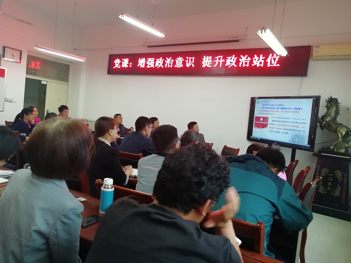 5月14下午,在2A316会议室,结合自己的学习和体会,院党总支书记雷振山以“增强政治意识提高政治站位”为主题给我院教师党员上党课。