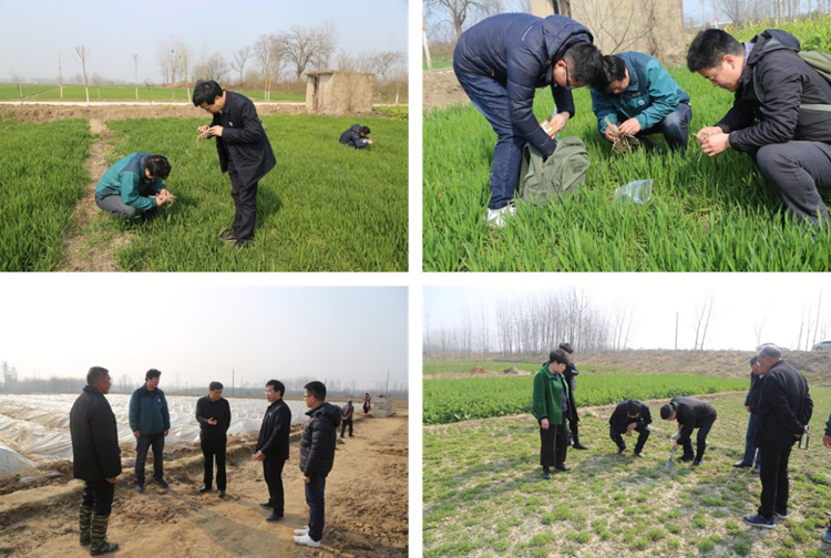 最是春风送暖时,感受着“两会”暖意,2019年3月10日,植物保护教研室史洪中教授、陈利军副教授、郭世保副教授和王春生博士,前往罗山、息县、淮滨等地,积极开展院士工作站相关项目的科研工作。