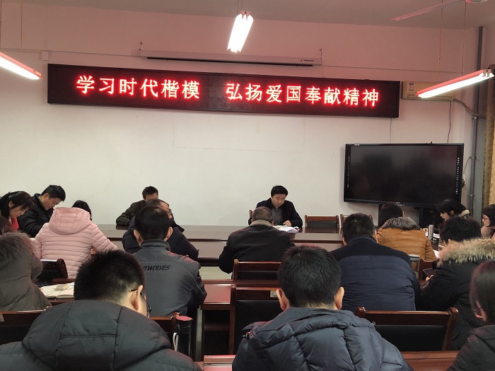 为贯彻习近平总书记对弘扬爱国奋斗精神作出的一系列重要指示,12月18日下午,我院在2A316会议室,组织全体教职工开展了“学习时代楷模,弘扬爱国奉献精神”为主题的政治理论学习,会议由我院党总支书记雷振山主持。