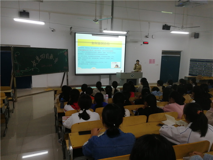 2018年9月26日晚上,我院于二教406教室开展了“女生四自教育”讲座,由王付娟老师担任主讲人,18级全体女生积极参与。