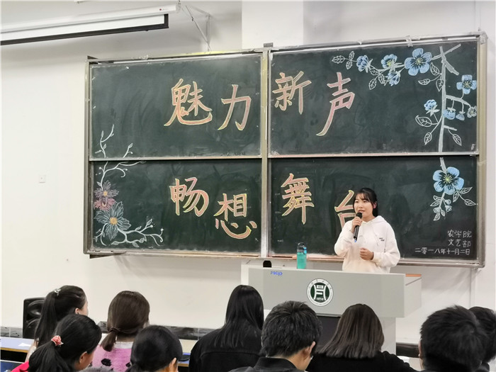 2018年11月2日晚上,我院在一教E102举办了以“魅力新声,畅想舞台”为主题的歌唱比赛。学工组教师武浩以及文艺部干事担任了此次评委。我院大一同学观看了本次比赛。