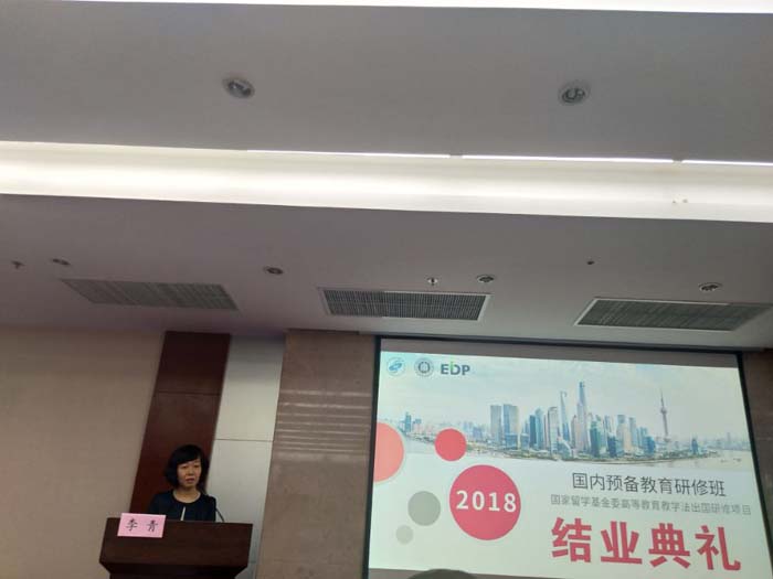 出席本次结业典礼的领导有国家留学基金委副秘书长李青,国家留学基金委法律与项目部副主任杨光,国家留学基金委法律与项目部李晔,华东师大高级管理者发展与培训中心主任黄健。