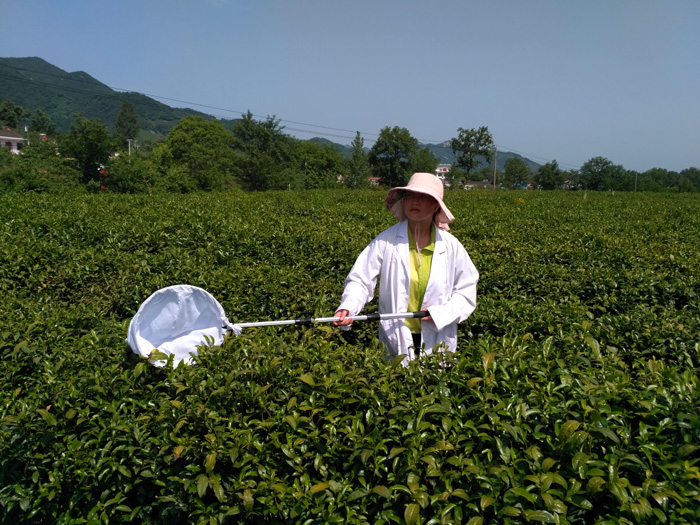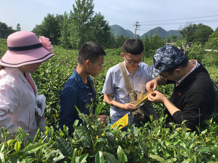 按照化学农药减施增效技术集成与模式研究观测指标与方法中的规定,调查茶尺蠖、茶毛虫和茶小绿叶蝉时需要早晨晨露末干时开始,因此,参与调查的老师和同学们早上5点出发,在规定的时间点之前完成了各项调查任务,及时更换了粘虫板等。随后,对主要害虫茶小绿叶蝉、茶尺蠖、害螨及天敌等进行了标本采集。调查人员还向当地农户和采茶工人就茶园管理等情况进行了口头询问调查。