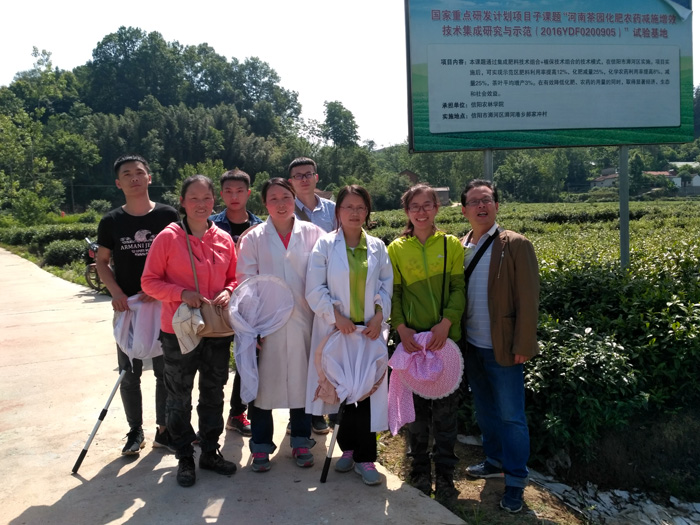 2018年5月13日,我院植物保护教研室各任务负责人及参与科研训练任务的本科生一行10余人共赴浉河港茶园试验基地,开展了各项任务的调查、标本采集等工作。