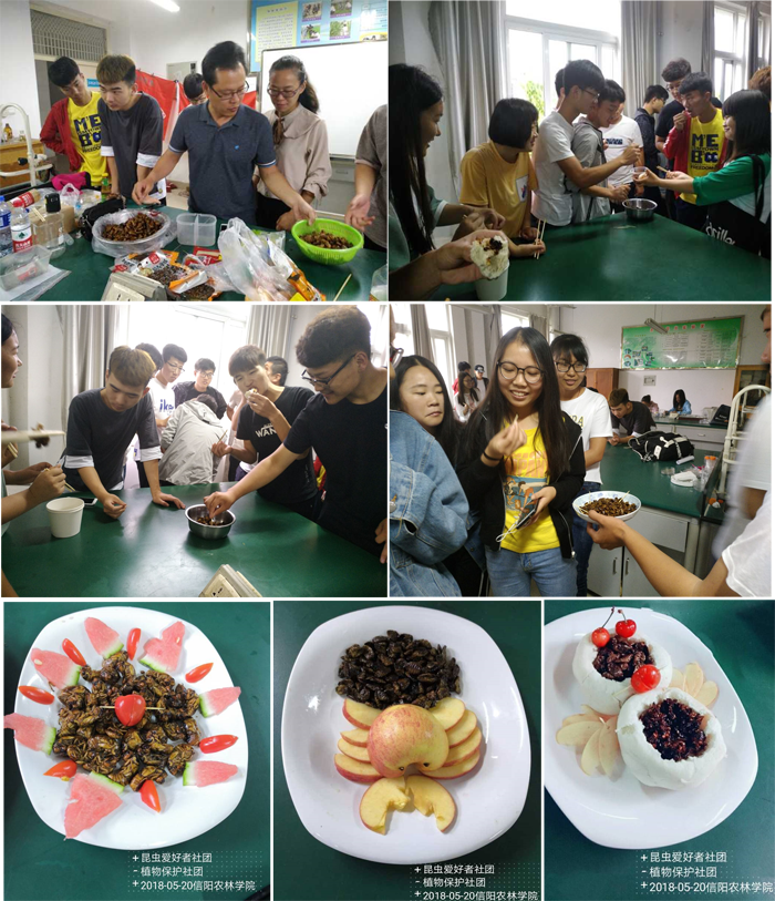 2018年5月20日上午,我院植物保护教研室张方梅老师走进昆虫爱好者社团和植物保护社团,开展了第二课堂活动之“食用昆虫——昆虫宴”。我院植保教研室的潘鹏亮老师、昆虫爱好者社团、植物保护社团及院社团部成员参加了本次活动。